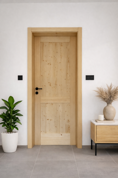 Vsa lesena notranja vrata imajo masivne podboje debeline 3 cm, kar zagotavlja stabilnost, dolgotrajnost in kakovosten videz.