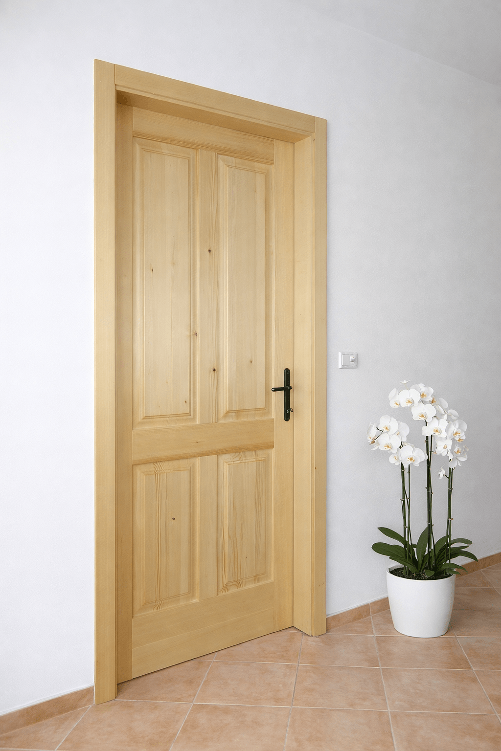 – Vsaka naša lesena notranja vrata imajo masiven podboj debeline 3 cm – kar zagotavlja stabilnost in tiho zapiranje.