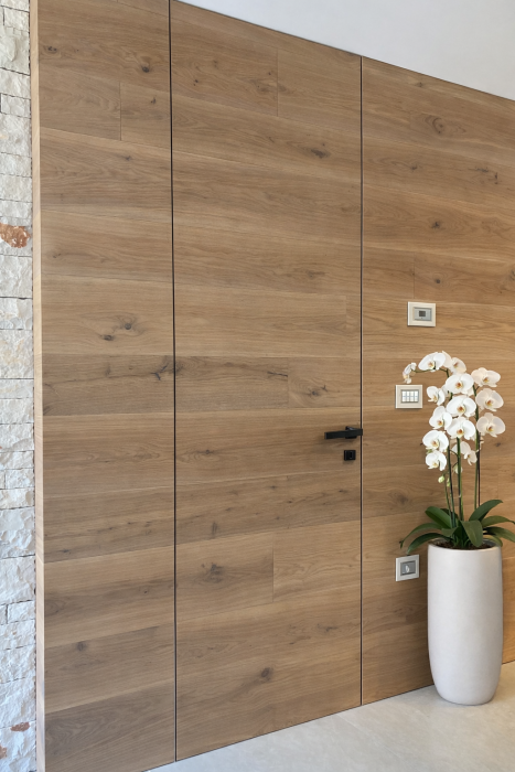 Doorline vrata in trendi nevidnih podbojev so lahko tudi iz parketa